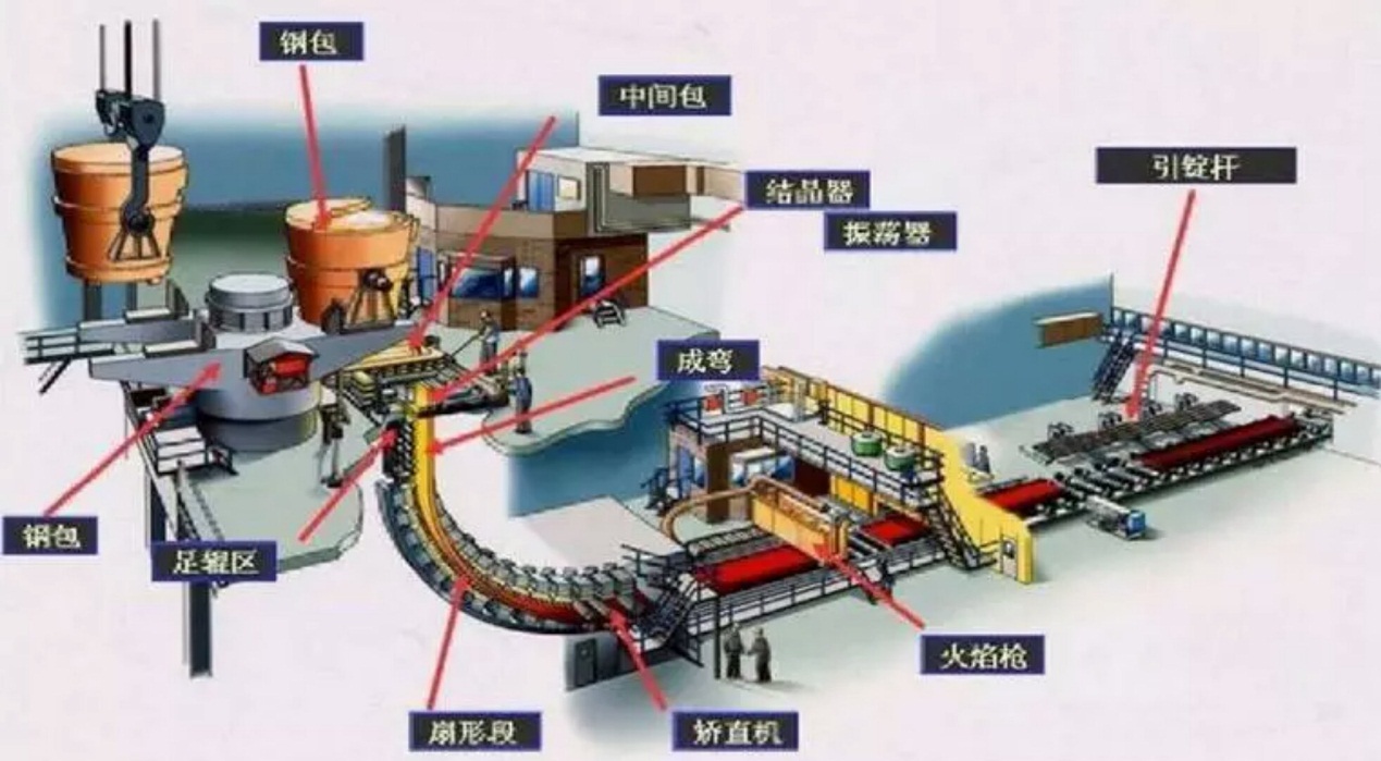 連鑄:連續鑄鋼(英文Continuous Steel Casting)的簡稱,可實現不間斷連續生產。與模鑄相比,連鑄技術具有提高金屬收得率、改善勞動環境、自動化程度高、鑄坯質量好等顯著優勢,現目前大多數鋼廠都采用連鑄澆注,可生產方坯、圓坯、板坯等。