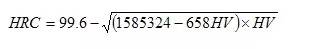 此公式換算結果與國家標準換算值對照,換算誤差為±2HV。