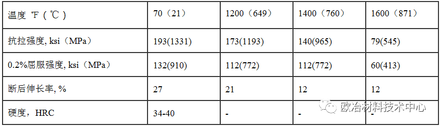 Waspaloy合金在760-870℃ (1400-1600℉)溫度區間內仍具有相當好的強度值,以及優良的抗氧化性,可服役于溫度高達870℃(1600℉)燃氣渦輪發動機工作環境。在620-650℃(1150-1200℉)溫度范圍內,Waspaloy合金的蠕變斷裂強度明顯優于718合金。其730°C (1350°F)以下的短時熱抗拉強度劣于RA718。