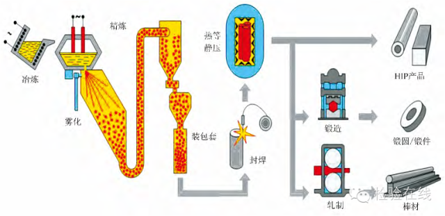 概述:噴射成型是由英國的Swansea大學(xué)教授A.Singer于1968年提出來的,并于1974年由R.Brooks等人成功將其應(yīng)用于鍛造坯的生產(chǎn),發(fā)展了著名的Osprey工藝,是利用快速凝固的方法制備高性能材料的先進(jìn)技術(shù)。噴射成型高速鋼也屬于粉末冶金高速鋼,該技術(shù)消除了成分宏觀偏析問題,具有粉末冶金的組織特點(diǎn)。。