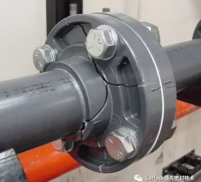 安裝指導(dǎo)一般包括如何清理法蘭表面,如何上緊螺栓以及墊片需要的扭矩值(除非金屬法蘭外)等要求。在此需要特別說(shuō)明一下非金屬(PVC,FRP,搪玻璃等)管道或法蘭,在保證墊片達(dá)到密封效果的前提下,需要按照設(shè)備或法蘭生產(chǎn)商提供的扭矩值上緊。否則很容易出現(xiàn)墊片尚未上緊而法蘭已因過(guò)度上緊而被壓裂的情況,如下圖(圖7)。