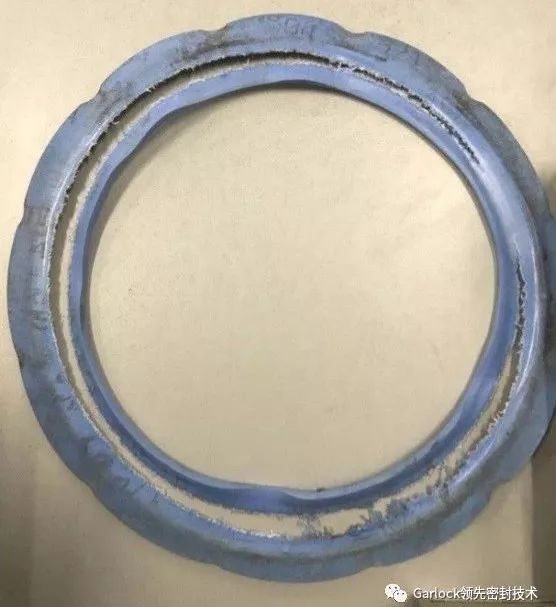 圖5壓縮載荷過(guò)低引起墊片吹出 圖6 壓縮不均勻?qū)е聣|片吹出