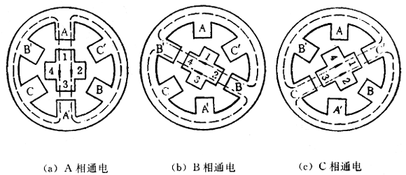 下面介紹反應式步進電動機單三拍、六拍及雙三拍通電方式的基本原理。