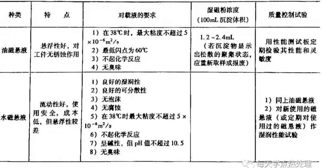 ▼表4 磁懸液種類、特點及技術要求