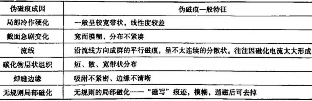 表7 所列為偽磁痕(非缺陷磁痕)的鑒別要點。
