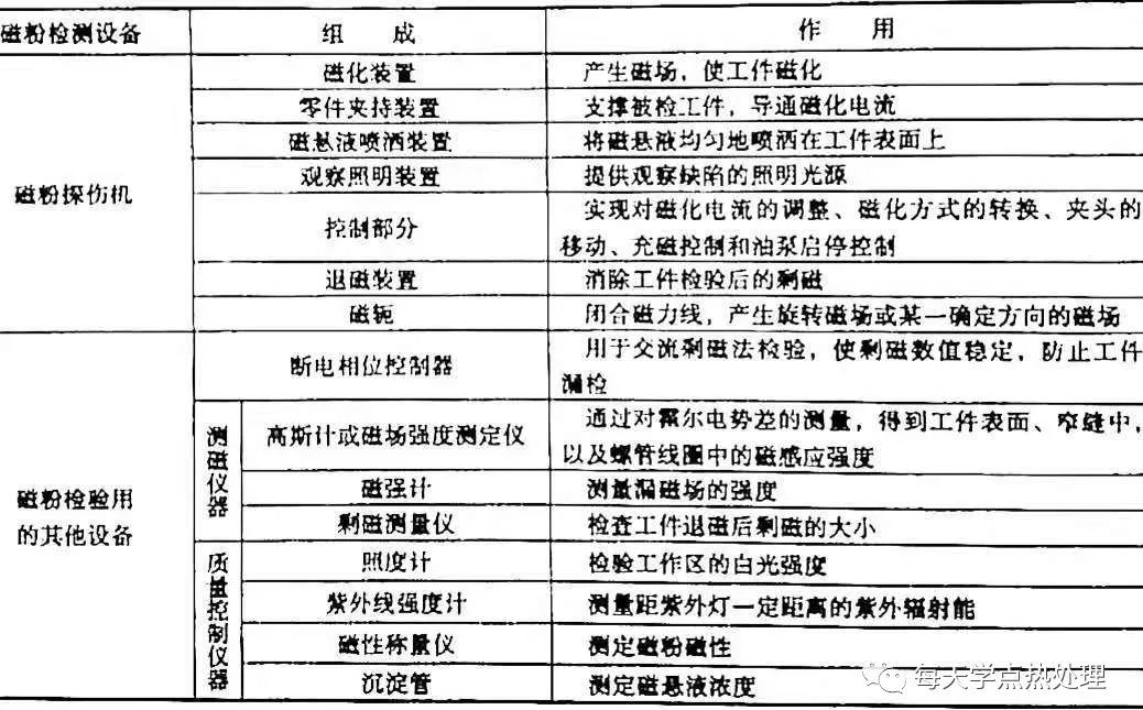▼表8 磁粉檢測設備的組成及作用