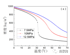 圖2 二氧化碳密度跨臨界變化規(guī)律