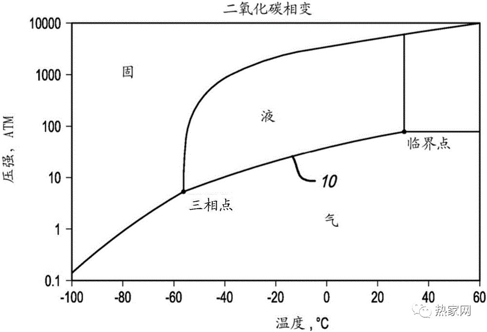 CO2的臨界溫度為31.1oC,臨界壓強為7.38MPa,狀態(tài)轉(zhuǎn)變點如圖1所示。因此超臨界二氧化碳如作為淬火冷卻介質(zhì),可將工件最終冷卻到室溫附近。臨界壓強處于中等壓強,滿足該壓強要求的設備加工與控制等就目前工業(yè)水平來說不算困難。另外,CO2還具有無毒、無味、不燃、不腐蝕、價格便宜、易于精制、易于回收等優(yōu)點。