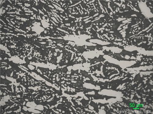 ④半范性夾雜物 指各種多相的鋁硅酸鹽夾雜物。其中作為基底的夾雜物(鋁硅酸鹽玻璃)一般當鋼受熱加工時具有范性;但是在這基底上分布的析出相晶體(如Al2O3、尖晶石類氧化物)的范性很差。鋼經熱變形后,范性夾雜物相(基底)多少隨鋼變形延伸,而脆性的夾雜物相不變形,仍保持原來形狀,只是彼此之間的距離被拉長。