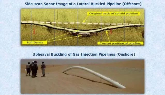 架空或埋地管道發生失穩的原因是管道熱脹被兩側錨固,或連續土壤約束給限制住了,導致管道形成擠壓作用,如果溫差大,擠壓力大,架空管道缺少導向架,或埋地管道埋深覆土過淺,就會讓管道抵抗擠壓能力變弱,容易發生上述失穩。