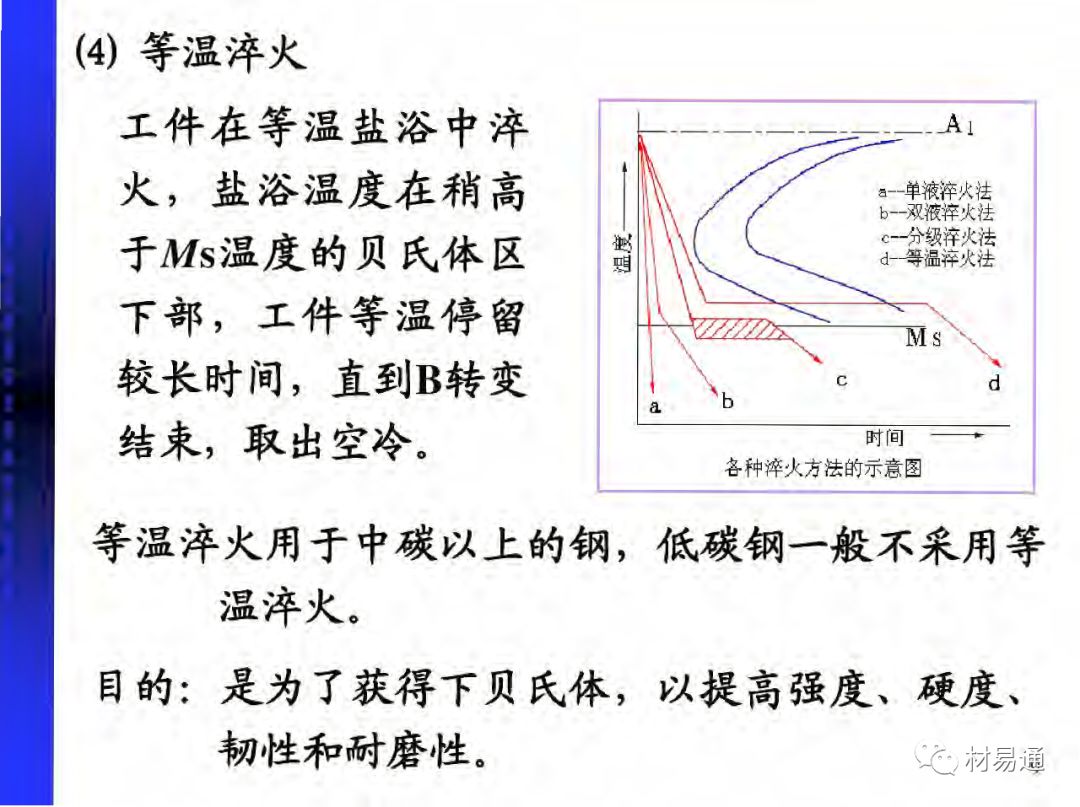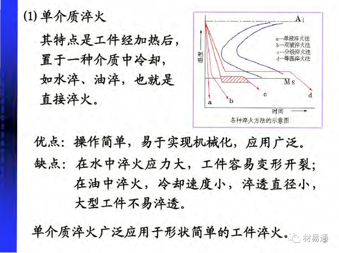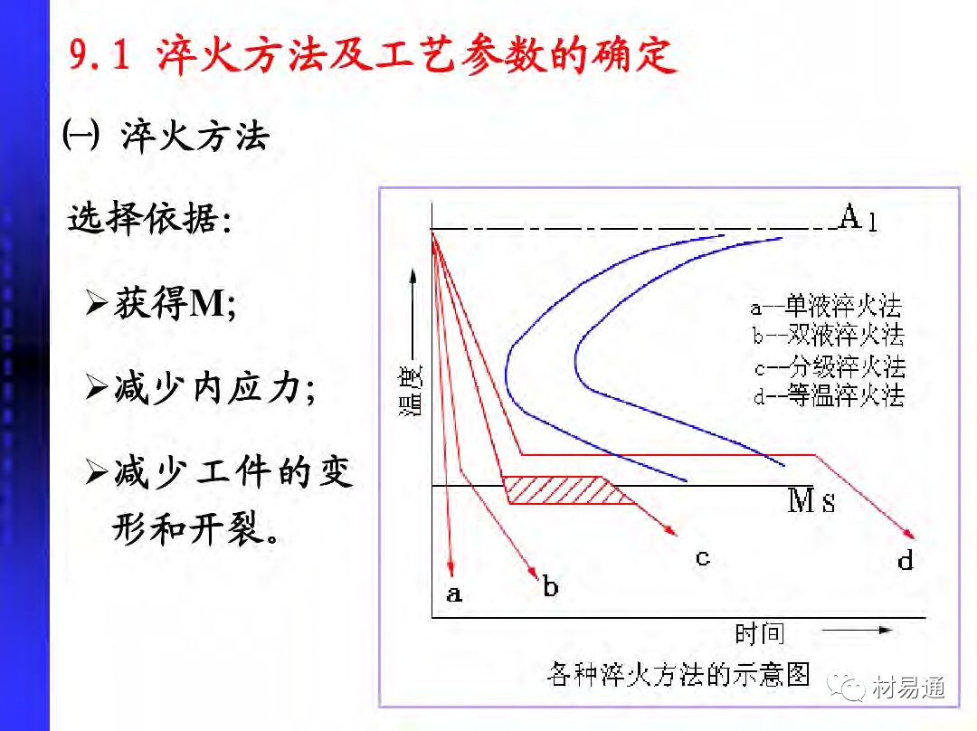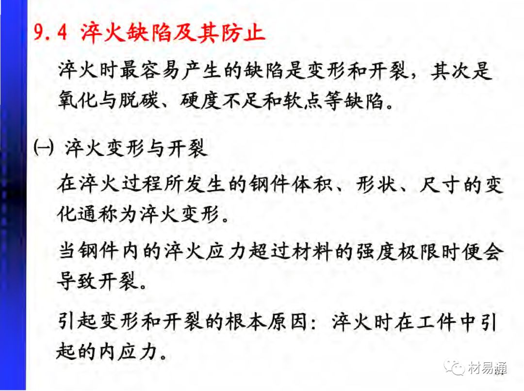 淬火的目的是提高硬度、強(qiáng)度、耐磨性以滿足零件的使用性能。鋼的淬火是熱處理工藝中最重要、也是用途最廣泛的工序,如工具、量具、模具、軸承、彈簧和汽車、拖拉機(jī)、柴油機(jī)、切削加工機(jī)床、氣動(dòng)工具、鉆探機(jī)械、農(nóng)機(jī)具、石油機(jī)械、化工機(jī)械、紡織機(jī)械、飛機(jī)等零件都在使用淬火工藝。 下面我們通過一組PPT來學(xué)習(xí)一下 鋼的淬火.