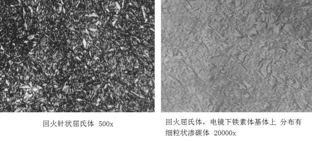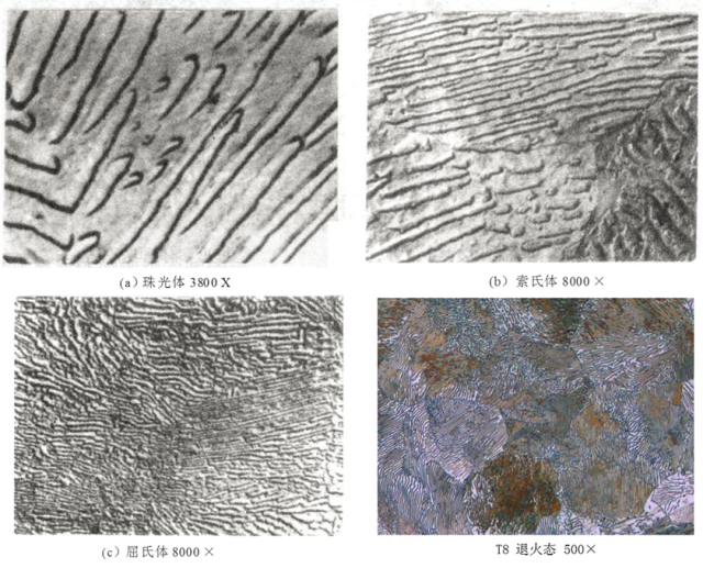 在600~550℃形成的珠光體用金相顯微鏡放大500倍,不能分辨珠光體片層,僅看到黑色的球團狀組織,只有用電子顯微鏡放大10000倍才能分辨的片層稱為屈氏體。