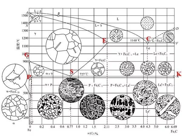 在液態鐵碳合金中,首先單獨結晶的滲碳體(一次滲碳體)為塊狀,角不尖銳,共晶滲碳體呈骨骼狀