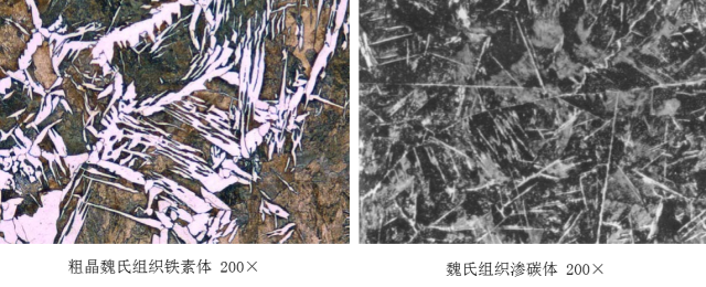 定義:如果奧氏體晶粒比較粗大,冷卻速度又比較適宜,先共析相有可能呈針狀(片狀)形態與片狀珠光體混合存在,稱為魏氏組織
