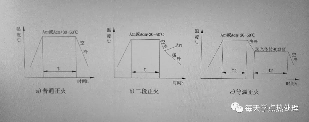 尺寸較大的鋼管、精密鋼管、鋼鐵、工件常用正火取代調質,目標是得到F和偽共析的珠光體產物,但實際情況比較復雜,尤其是鍛件空冷後的所謂正火與重新正火有明顯差別。