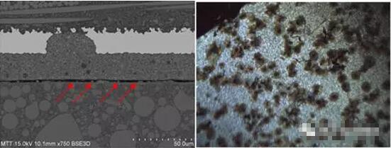 圖9 左IC分層失效 、右涂層樣品界面點腐蝕失效
