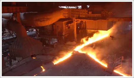 煉鐵廠,負責把鐵礦煉成鐵水,燒結礦、焦炭等一起被裝入這些高爐,用不了多久,一爐鐵水就出鍋了。鐵水從高爐流出來,左邊的流入鋼包送往煉鋼,右邊的是鐵渣,經過水沖之后成為水泥廠的原料。