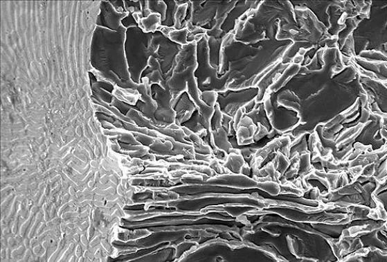 低溫脆性斷裂包括穿晶斷和沿晶界的晶間脆斷兩種斷裂方式。穿晶脆斷主要是解理斷裂。常見(jiàn)的低溫脆性斷裂大多數(shù)是沿解理面的穿晶斷裂;而晶間脆斷通常在應(yīng)力腐蝕或發(fā)生回火脆性的情況下出現(xiàn)。