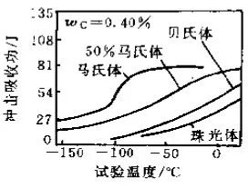圖12 為組織對(duì)42CrMo鋼的脆性轉(zhuǎn)變溫度和沖擊韌度的影響,其韌度按鐵素體-珠光體、貝氏體、馬氏體的順序增高。