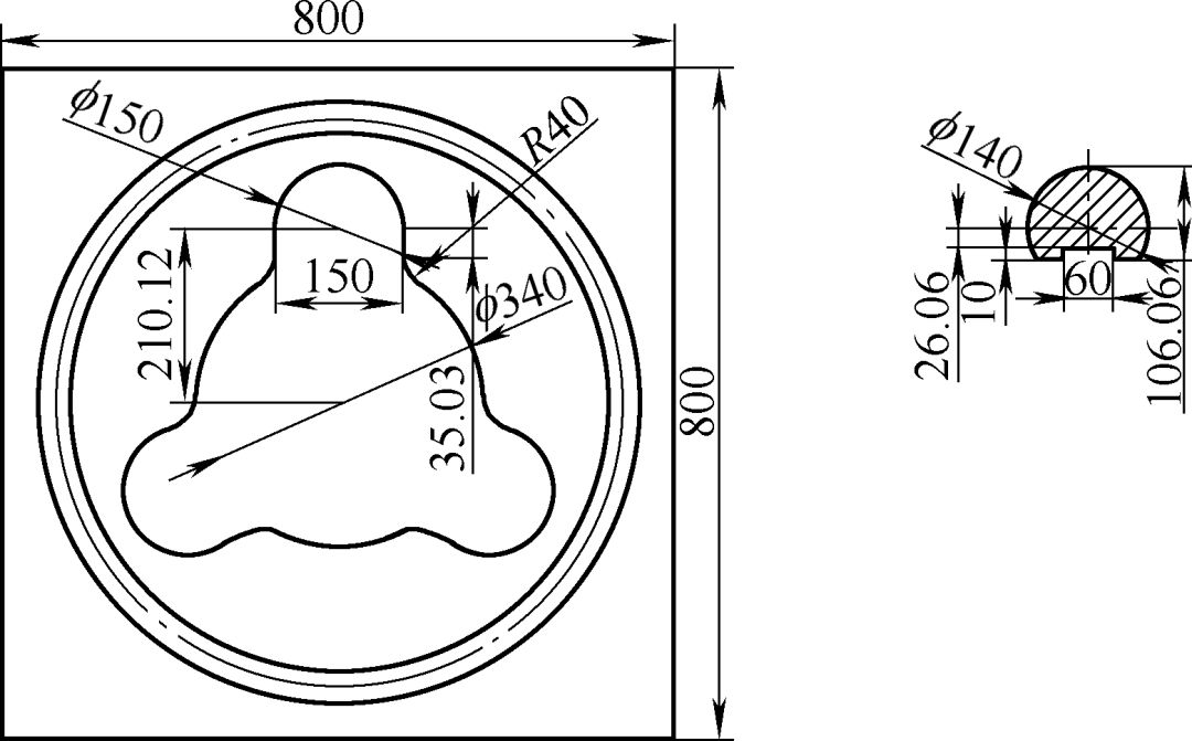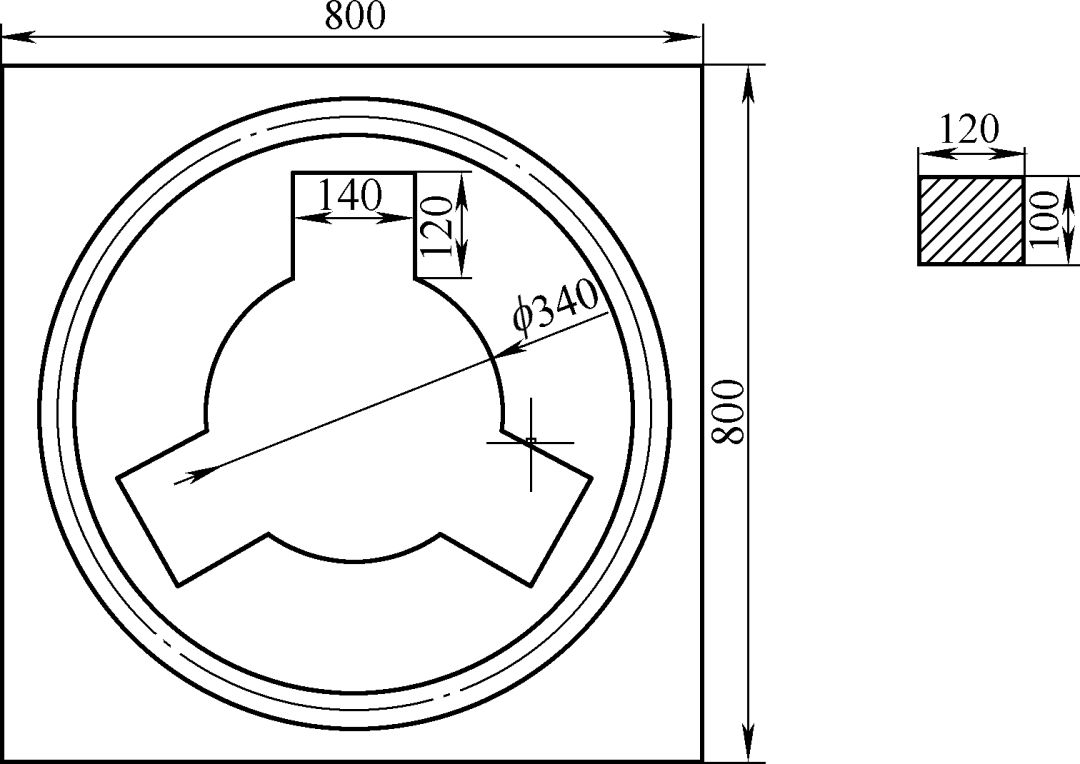 思路分析為:①電極可以直接提φ140mm的棒料,加工平面及銑槽,省略掉鍛打費用,電極的成型費用僅僅為機(jī)械加工費用。