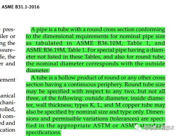 PIPE是一種符合ASME B36.10M 表格1 和ASME B36.19M的一種圓形截面TUBE.有一些不符合這些表格里面的尺寸的特殊的PIPE,以及圓形TUBE,名義外徑對(duì)應(yīng)實(shí)際外徑.