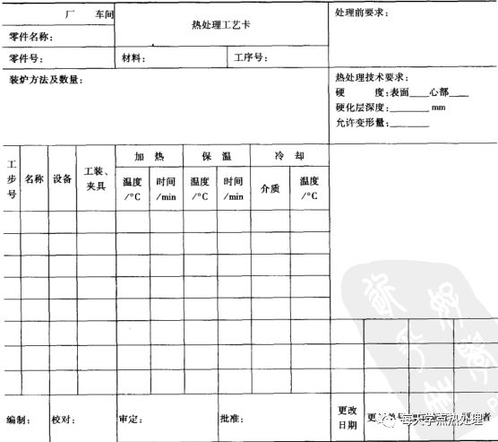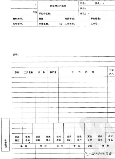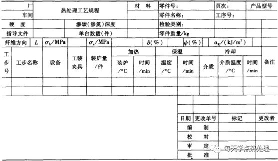 工藝規程應包括基本要素、熱處理工序流程及審批欄更改欄等。