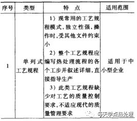 上述各類型工藝規程的特點和適用范圍見表9 。