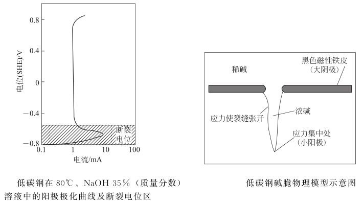 堿脆必須有高溫濃堿液的腐蝕,如當(dāng) NaOH 的質(zhì)量分?jǐn)?shù)低于 5% 則不發(fā)生堿脆,這些濃堿液可以是設(shè)備的工作介質(zhì),也可以是設(shè)備在使用過(guò)程富集的,苛性堿的濃度愈高,則堿脆的敏感性愈大。