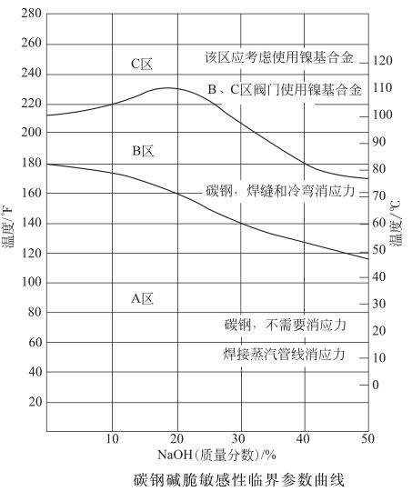 堿脆不僅與堿的濃度有關(guān),還取決于溶液的溫度,見(jiàn)下圖: