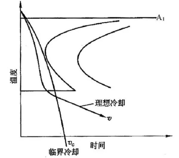 在淬火冷卻時,在兩個溫度范圍內必須注意控制冷卻速度。其中一個區域是為了完全淬火硬化而需要快冷的臨界區域,為了使零件淬硬,在臨界區應當急冷。另一個區域是容易產生淬火裂紋的低溫區,在MS點溫度以下,在這個溫度區間發生奧氏體向馬氏體的轉變,體積膨脹,產生第二類畸變、第二類應力及宏觀熱處理應力,可能導致淬火裂紋,因此稱危險區。在危險區應當盡量慢冷,以緩和淬火內應力。