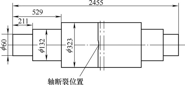 圖3 斷軸的尺寸及斷裂部位示意圖