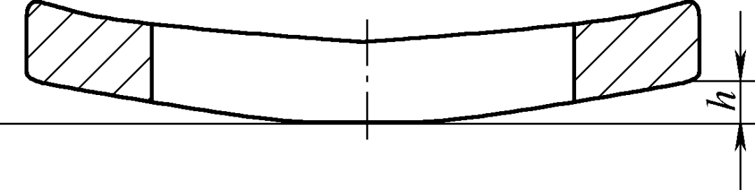 由于淬火應(yīng)力和體積變化,引起零件各部分尺寸均勻變化而不改變零件形狀,稱尺寸脹縮。由于不均勻的淬火應(yīng)力,而使零件形狀改變者,即常說的淬火變形。套圈的徑向不均勻變形大小(長、短軸之差值),通常叫套圈的橢圓度;套圈的軸向不均勻變形,通常叫翹曲變形(見圖1),軸向均勻變形叫蝶形變形(見圖2)。所以,淬火應(yīng)力是產(chǎn)生變形和開裂的主要原因。