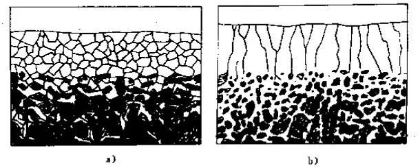 a)粒狀晶脫碳 b)柱狀晶脫碳