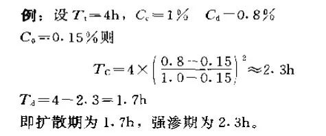 為了防止網(wǎng)狀碳化物呈出現(xiàn),可按下式適當(dāng)?shù)剡x擇強(qiáng)滲期和擴(kuò)散期的比例: