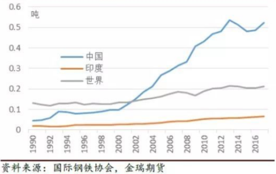 印度鋼材消費低基數、高增長,但消費水平遠低于世界平均值,預計到2030-31財年印度人均鋼材消費僅相當于中國2002-2003年的水平。