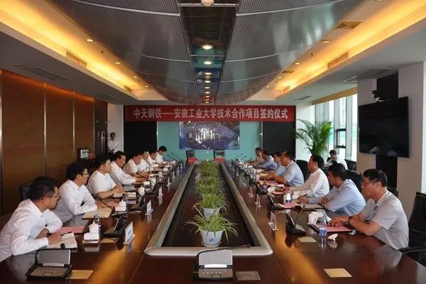 簽約儀式上,中天特鋼有限公司副總經(jīng)理萬(wàn)文華介紹了產(chǎn)學(xué)研合作的具體內(nèi)容及項(xiàng)目籌備情況,安徽工業(yè)大學(xué)校科研處處長(zhǎng)王孝義與中天特鋼有限公司總經(jīng)理王郢分別代表雙方簽訂了總額達(dá)500萬(wàn)元的產(chǎn)學(xué)研項(xiàng)目合同。雙方還就下一步的具體合作進(jìn)行了深入交流。