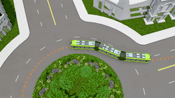 同時,因為擁有“虛擬軌道跟隨控制”技術,“智軌”列車轉彎半徑與普通公交車相當,且比普通公交車輛占用的通道寬度更小,很好地解決了超長車身帶來的轉彎難題。
