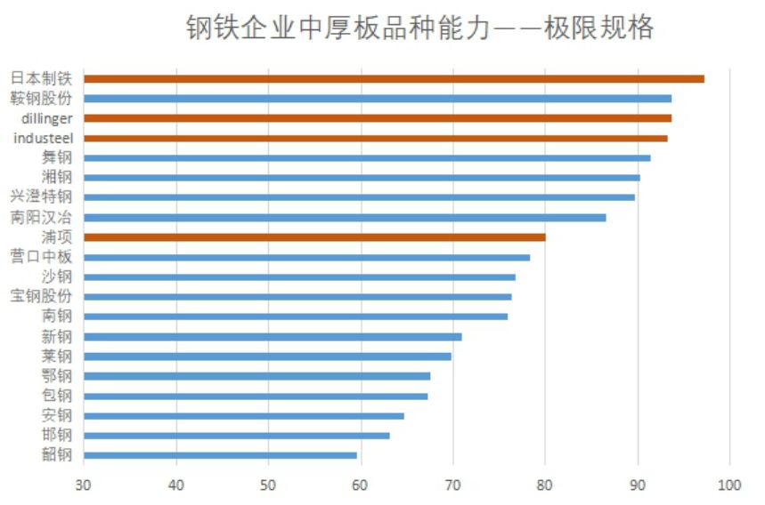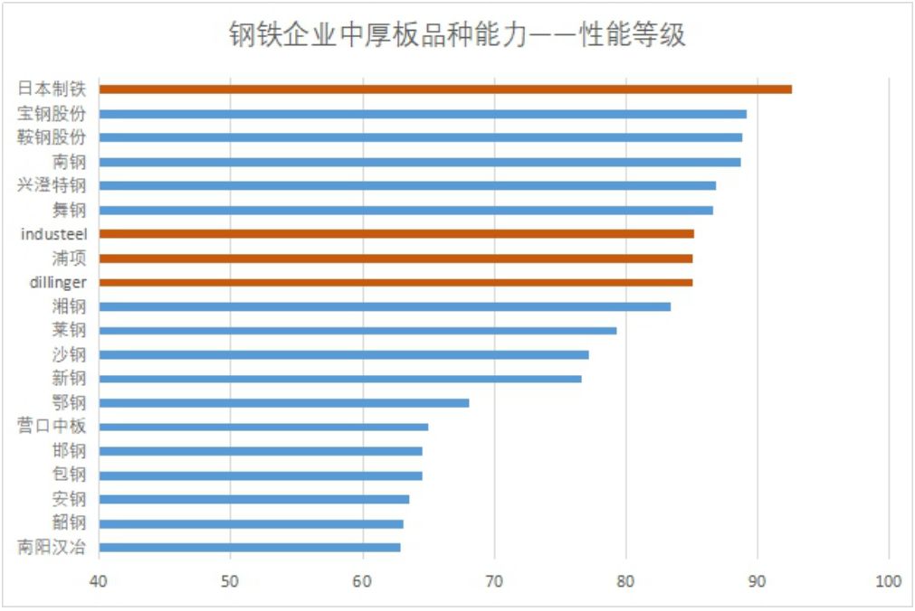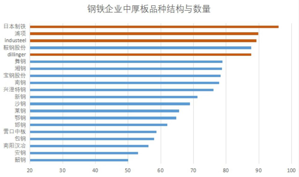 國際上的Indu-Steel德國Dillinger韓國浦項以及國內的鞍鋼,其綜合品種能力稍遜并緊跟日本制鐵的步伐。對于國內企業唯一跑在前面的鞍鋼,在部分重點領域的品種短板也對綜合能力的提升產生阻礙。