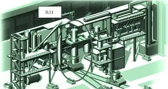 RH精煉爐還配備一套蒸氣噴射真空泵,是頂部真空室的關(guān)鍵部件,用于在真空處理期間強(qiáng)制脫碳或吹氧進(jìn)行化學(xué)加熱,在非真空處理期間用氧氣燃燒氣體將真空室耐火材料保持在工作溫度。RH通過各種監(jiān)測和控制系統(tǒng)來實(shí)現(xiàn)設(shè)備運(yùn)行的自動(dòng)化,在基礎(chǔ)自動(dòng)化系統(tǒng)之外,還配有工藝過程控制計(jì)算機(jī),能夠提供加熱和工藝過程相關(guān)信息,收集加熱數(shù)據(jù),跟蹤和監(jiān)測加熱過程的物理化學(xué)狀態(tài),以最終確定隨時(shí)間變化,在處理過程中添加物的類型和數(shù)量。