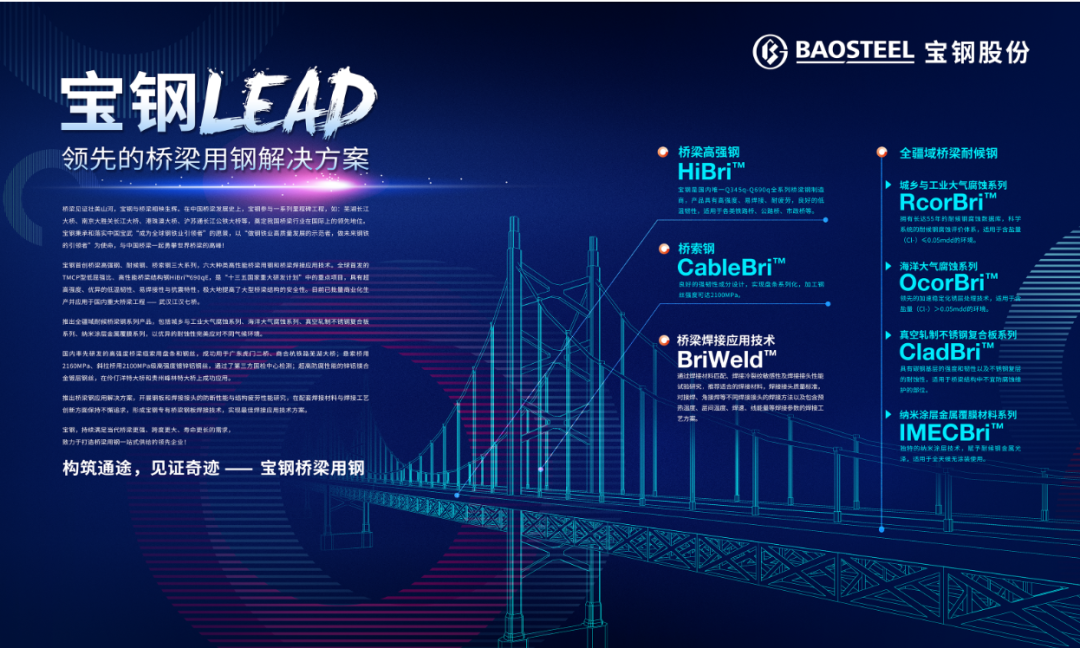 我國“一帶一路”重點項目——澳氹四橋于2020年8月正式進入結構工程,寶鋼橋梁高強鋼 HiBriTM690q已經開始向該工程批量供貨。澳氹四橋是國內第2座采用該鋼種和技術建造的示范工程。HiBriTM690q具有完全自主知識產權,各項性能指標均優于美日等發達國家水平,達國際領先,在我國第七代橋梁鋼厚板制造領域實現了全球領跑。