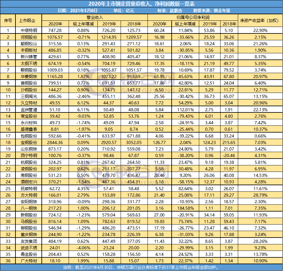 年報(bào)業(yè)績(jī)?nèi)砍鰻t,給上市鋼企排排座!
