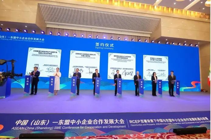5 月 28 日上午,“中國(山東)-東盟中小企業(yè)合作發(fā)展大會(huì)”在濟(jì)南市山東大廈勝利拉開帷幕。本次大會(huì)由山東省人民政府、中國-東盟中心主辦,由德州市人民政府、山東省外辦、省商務(wù)廳、省僑聯(lián)承辦,旨在深度融入“一帶一路” 倡議,搶抓區(qū)域全面經(jīng)濟(jì)伙伴關(guān)系協(xié)定(RCEP)簽署帶來的機(jī)遇,深化與山東省與東盟國家經(jīng)貿(mào)往來與人文交流,打造對接?xùn)|盟國家的高能級平臺。