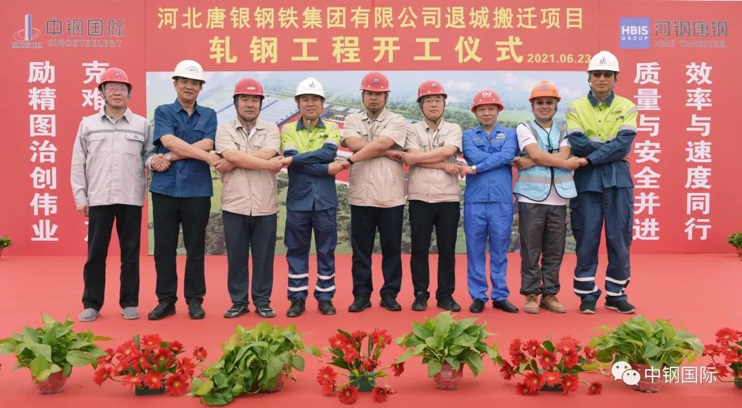 該項目主要建設內容為2臺100噸轉爐的上料系統、轉爐及其廠房、1套雙工位LF精煉爐及主控樓、地下料倉系統、供水地下管廊等,用鋼總量約20410噸,包括主廠房、兩條通廊和汽車卸料平臺。本次吊裝的鋼柱長22米、寬3米,有31噸、28噸兩種規格,采用130噸、50噸雙機抬吊方法進行吊裝,鋼柱柱腳固定方式為插入杯口式。為確保項目第一個重大節點高質量完成,項目部認真研究方案,合理安排人員分工,及時進行技術交底,嚴格監督各工序作業,最終在全體參建人員的努力下,首吊任務圓滿完成,正式拉開了項目鋼結構施工的序幕。首吊任務順利完成只是萬里長征的第一步,項目部全體人員表示將繼續發揚“一天也不耽誤、一天也不懈怠”的精神,竭盡全力,克服夏季高溫、工期緊張等困難,保質量保工期,實現完美履約。另外,近日,河鋼集團唐銀鋼鐵集團有限責任公司隆重舉行唐銀退城搬遷軋鋼項目開工儀式,標志著由中鋼國際全資子公司中鋼設備有限公司EPC總承包的唐銀退城搬遷軋鋼項目正式進入建設階段!河鋼唐銀是由河北鋼鐵集團唐鋼公司和河北銀水集團共同出資組建的大型鋼鐵聯合企業。為推動綠色轉型發展,在"環保優先、綠色發展"的目標定位和循環經濟、清潔生產的理念引領下,唐銀退城搬遷項目應運而生。中鋼設備有限公司(簡稱"中鋼設備")憑借在長材領域的領先自主技術、豐富的項目執行經驗和突出管理能力,中標其中的軋鋼項目。雙方于2021年4月30日正式簽訂唐銀退城搬遷軋鋼項目EPC合同。根據合同,中鋼設備負責新建兩條60萬噸/年高速線材,一條140萬噸/年雙高棒、一條200萬噸/年1450mm熱軋帶鋼生產線