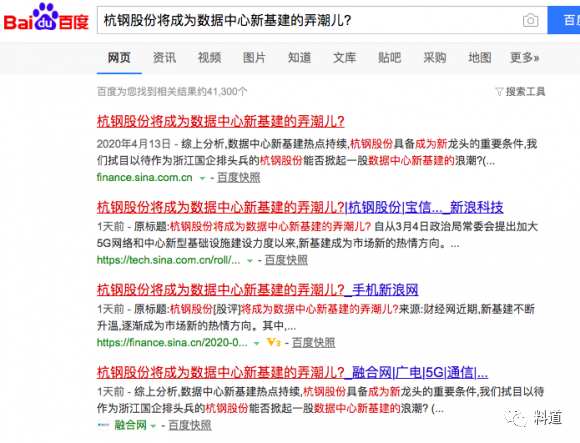 《杭鋼股份將成為數據中心新基建的弄潮兒?》一文多在4月13日中午11點—11:10之間發布,從標題到文章內容基本一致。