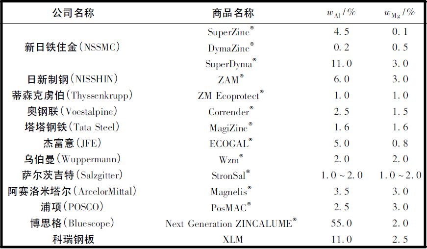 雖然歐洲各鋼廠低鋁鋅鋁鎂鍍層的Al、Mg 含量雖然不盡相同,但是歐洲鋼廠聯合對鋅鋁鎂鍍層汽車板進行了使用性能評估,認為歐洲各鋼廠的鋅鋁鎂產品可以為汽車用戶提供更好的成形性能、耐蝕性能,且各鋼廠的鋅鋁鎂鍍層產品是可以相互替代的。
