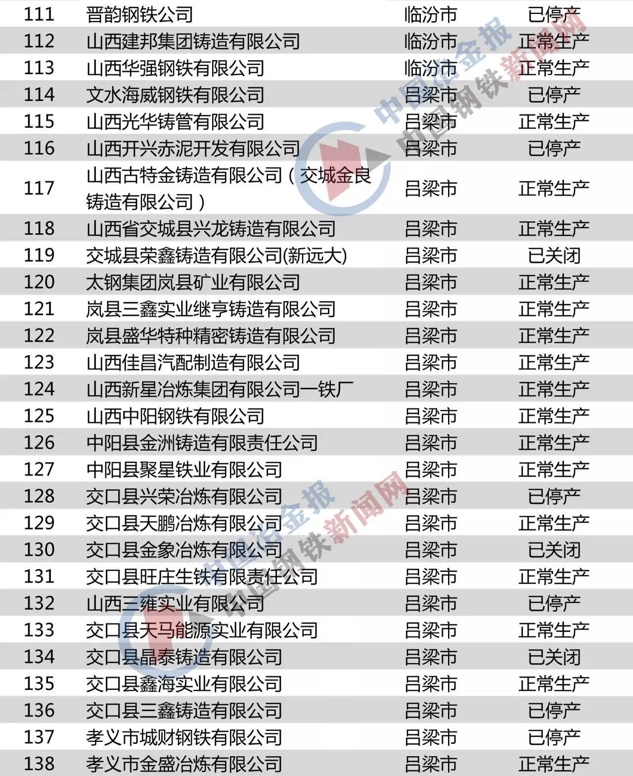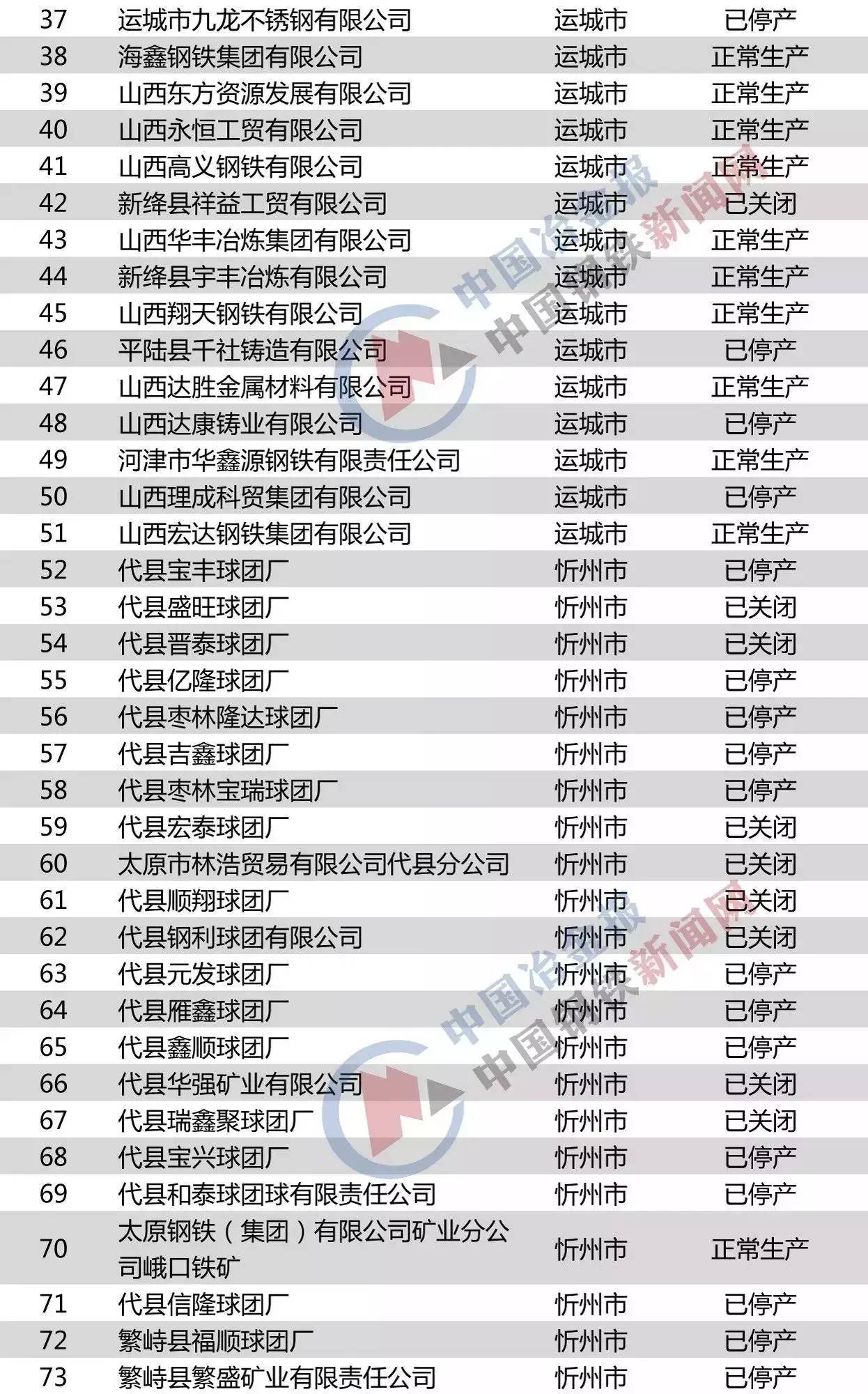 山西省鋼鐵企業名單