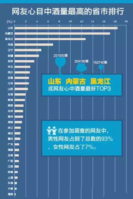 浙江地處沿海又是黃酒故鄉(xiāng),所以向來是葡萄酒和黃酒的消費大省,白酒消費相對較低。浙江人喝啤酒都是海量,開始喝的時候,不是一瓶一瓶的拿開的,而是箱(6瓶),一般要喝個3、4箱才是兄弟。東線一帶的地區(qū),例如萬寧、瓊海和文昌,那里喝酒的風氣不是很濃,民風清爽,溫和,酒不是主要的飲品,東線市縣主要以茶為主。