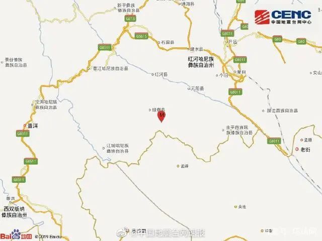 云南紅河州綠春縣發生4.4級地震,震源深度11千米
