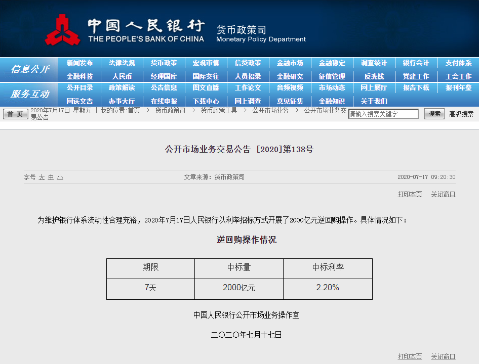 央行開展2000億逆回購,提振市場信心