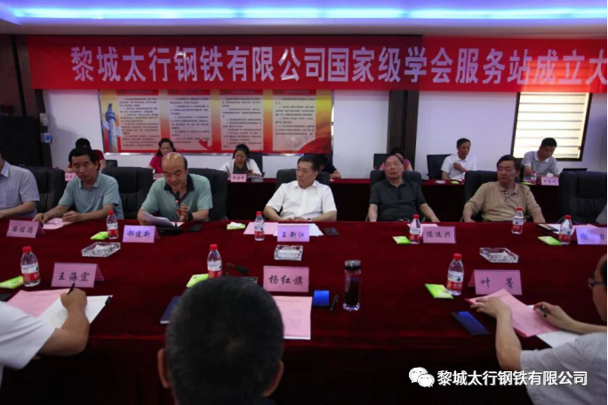 2020年7月27日,中國金屬學(xué)會(huì)、山西省科學(xué)技術(shù)協(xié)會(huì)--黎城太行鋼鐵有限公司服務(wù)站成立大會(huì)勝利召開。中國金屬學(xué)會(huì)副理事長兼秘書長王新江、山西省科協(xié)副主席郝建新、原湖南省冶金廳廳長陳運(yùn)興、山西省鋼鐵行業(yè)協(xié)會(huì)常務(wù)副會(huì)長謝力、北京科技大學(xué)冶金學(xué)院書記張建良、長治市科協(xié)主席王海宏、黎城縣委書記楊紅旗、長治市發(fā)改委副主任葉菁、長治市工信局副局長陳明先等40多名領(lǐng)導(dǎo)、專家、學(xué)者出席大會(huì)。黎城縣委常委、常務(wù)副縣長申曉峰主持大會(huì)。
